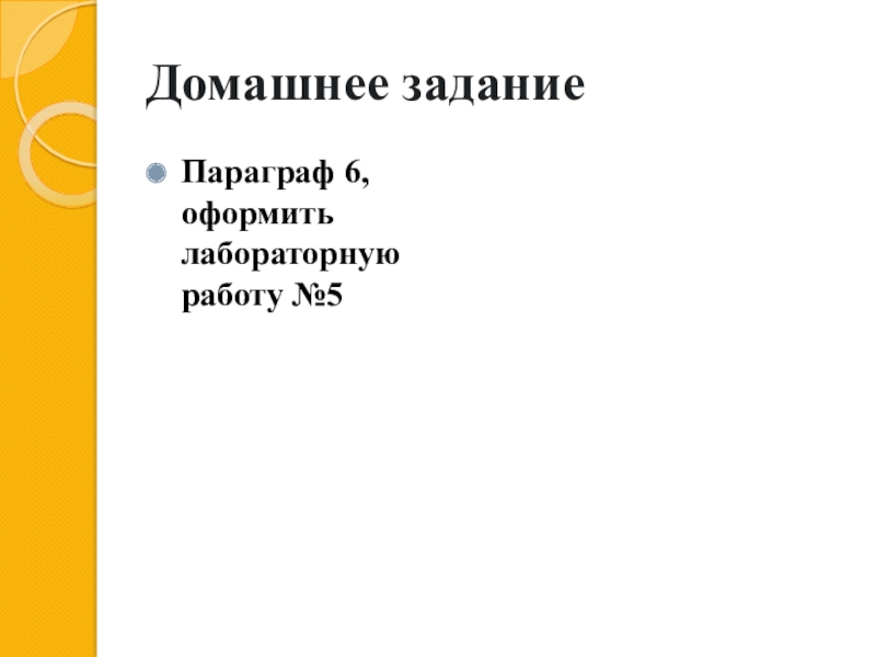 Домашнее заданиеПараграф 6, оформить лабораторную работу №5