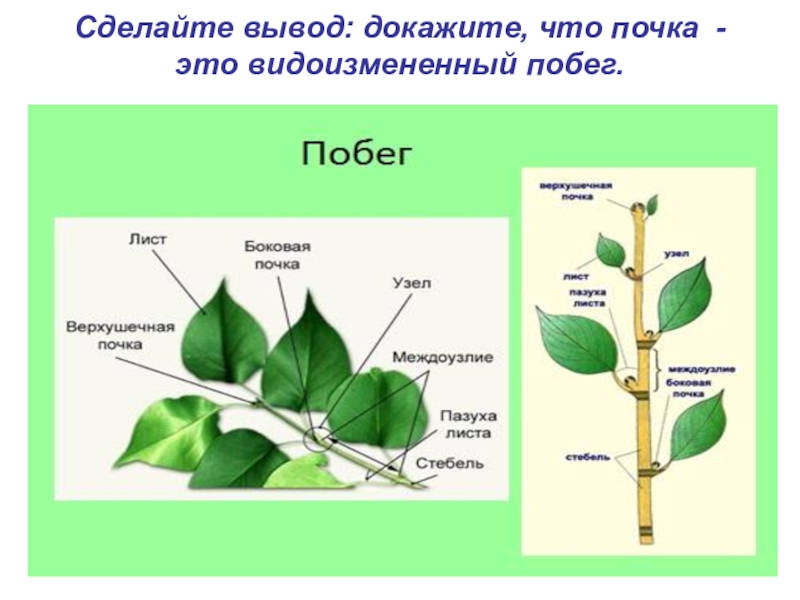Слайд 9Сделайте вывод: докажите, что почка - это видоизмененный побег.