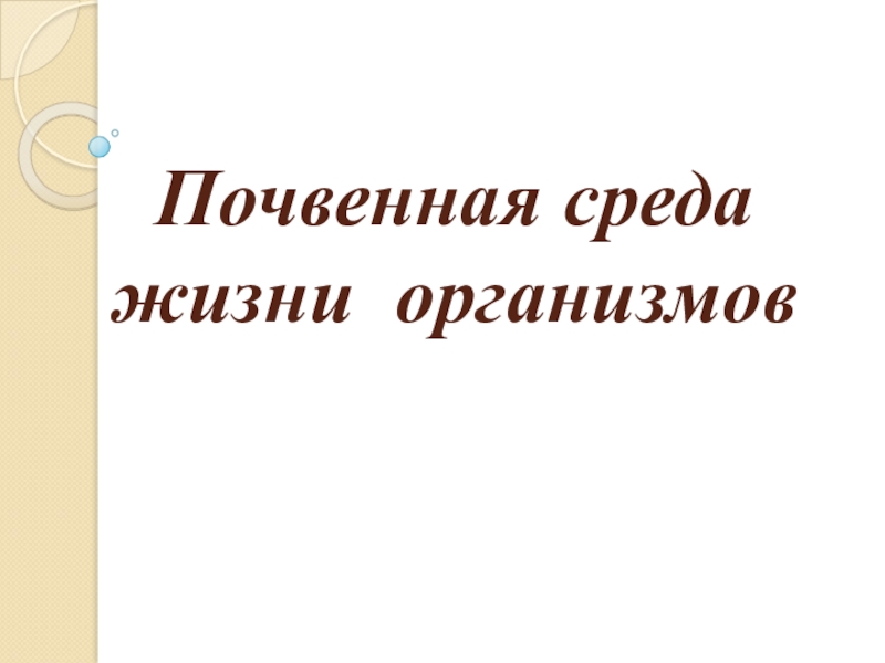 Почвенная среда жизни организмов