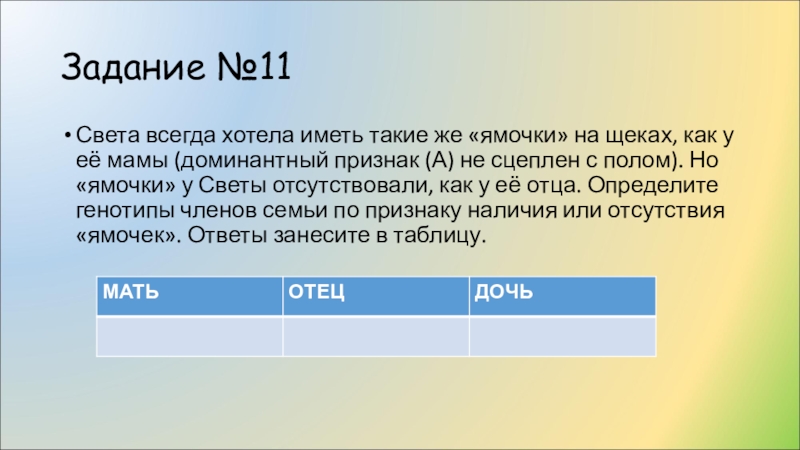 1. Мать ребёнка заявляла в суде, что отцом её сына является мужчина с IV(АВ) группой крови. Мог ли он быть отцом ребёнка?