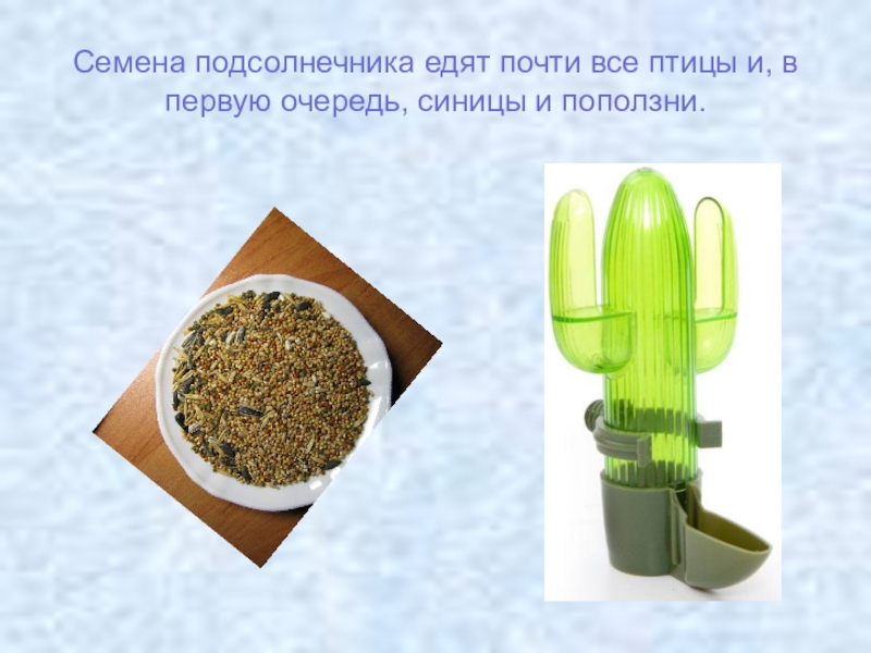 Слайд 25Семена подсолнечника едят почти все птицы и, в первую очередь, синицы