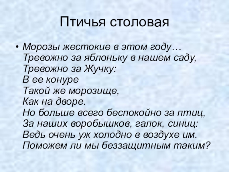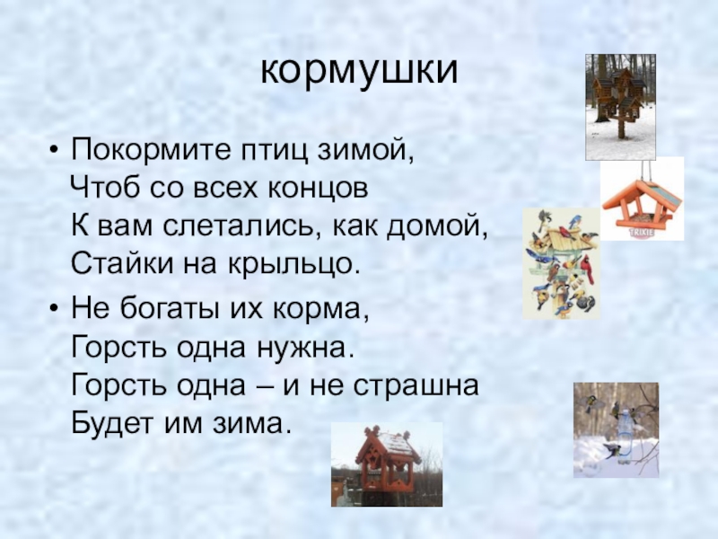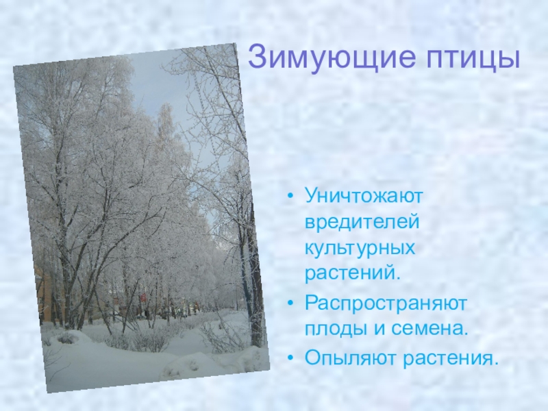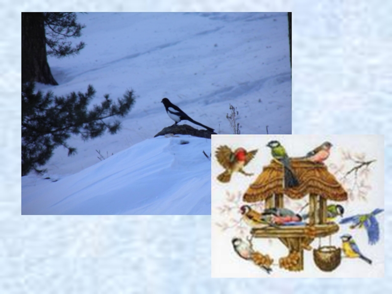 Слайд 29Хлебные крошки едят синицы и воробьи.