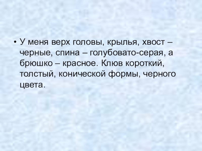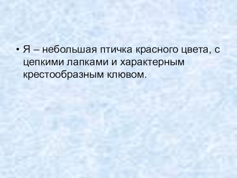 Я – небольшая птичка красного цвета, с цепкими лапками и характерным