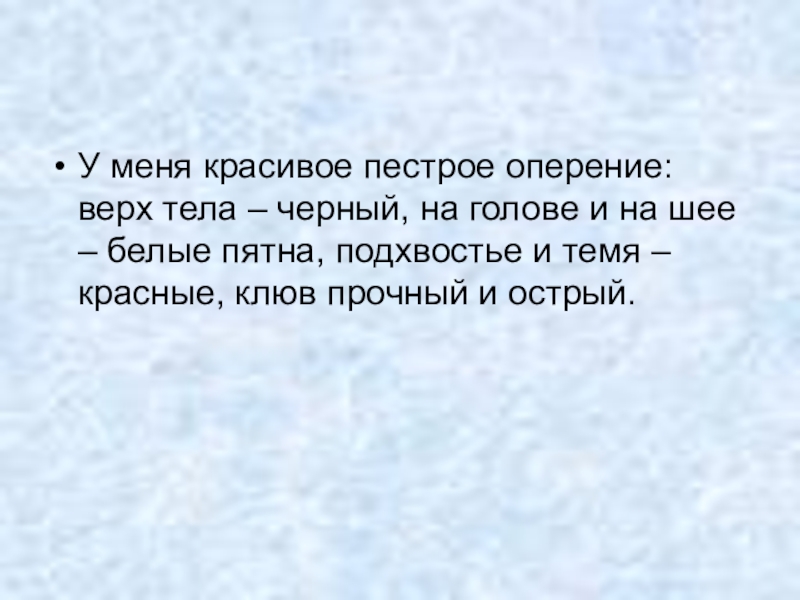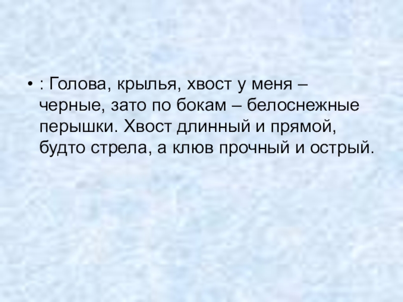 : Голова, крылья, хвост у меня – черные, зато по бокам