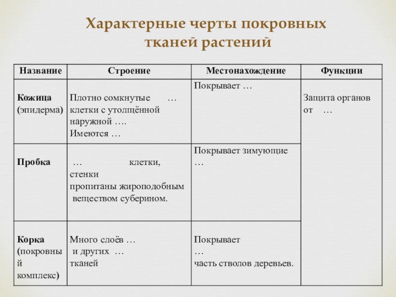 Тема урока: «Покровные ткани растений»