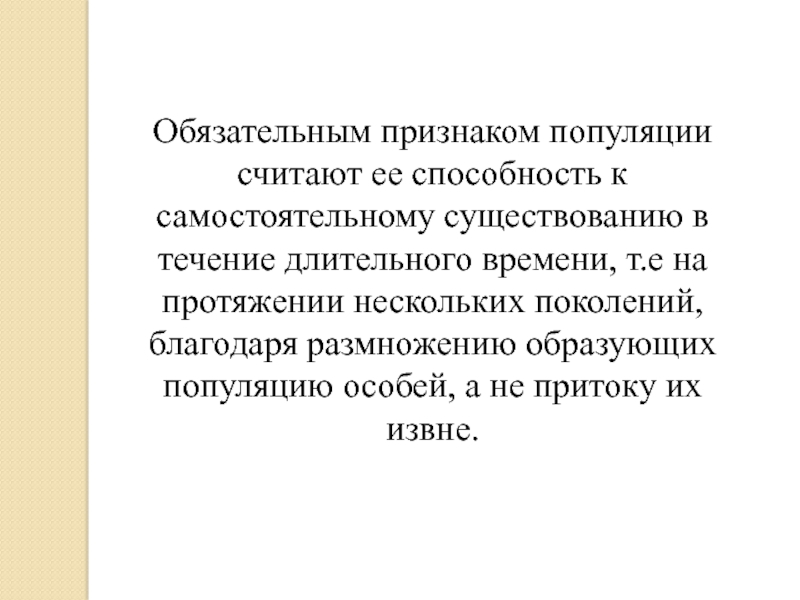 Слайд 6Обязательным признаком популяции считают ее способность к самостоятельному существованию в течение
