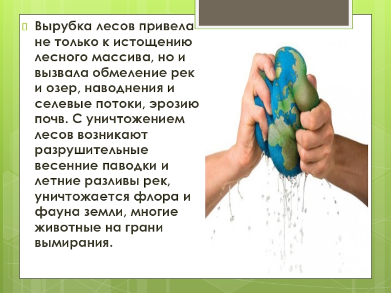 Слайд 9Вырубка лесов привела не только к истощению лесного массива, но и