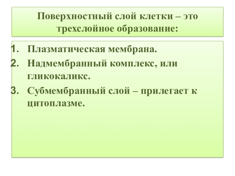 Гликокаликс выполняет: рецепторную и маркерную функции, а также участвует в обеспечении избирательности транспорта веществ и пристеночном (примембранном) пищеварении.