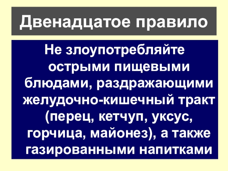 Не злоупотребляйте острыми пищевыми блюдами, раздражающими желудочно-кишечный тракт (перец, кетчуп,