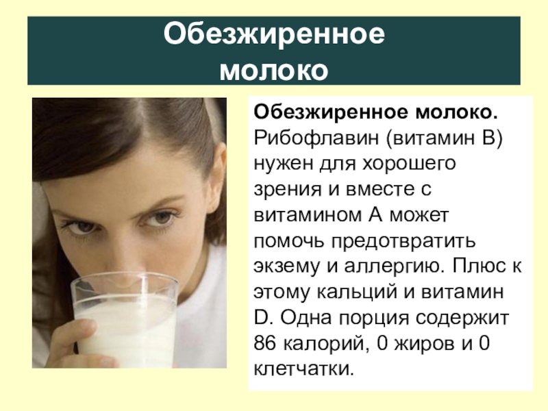 Обезжиренное молоко. Рибофлавин (витамин B) нужен для хорошего зрения и