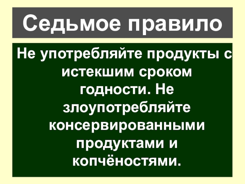 Не употребляйте продукты с истекшим сроком годности. Не злоупотребляйте консервированными