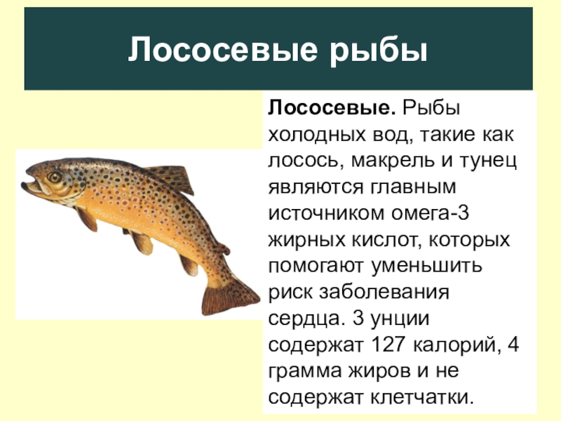 Лососевые. Рыбы холодных вод, такие как лосось, макрель и тунец