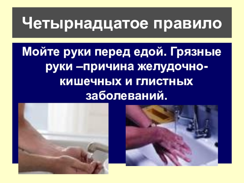 Мойте руки перед едой. Грязные руки –причина желудочно-кишечных и глистных