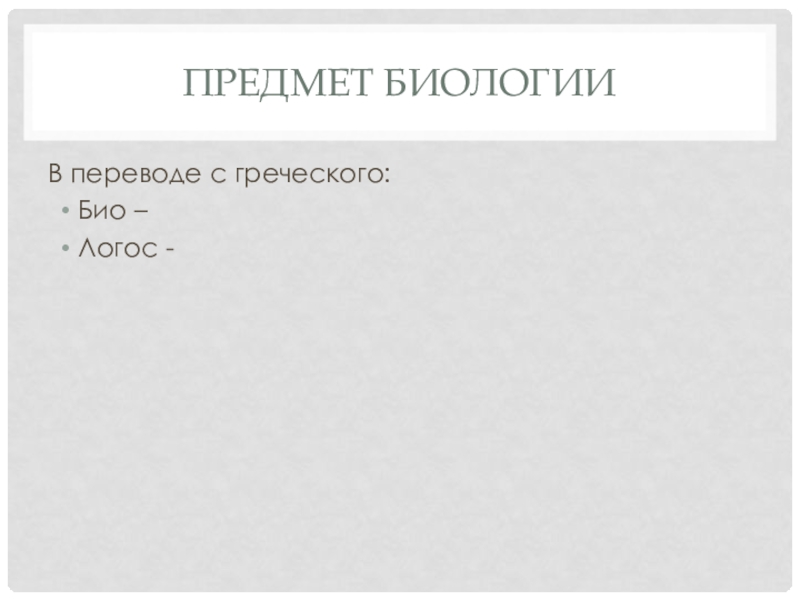 Предмет биологииВ переводе с греческого: Био –Логос -