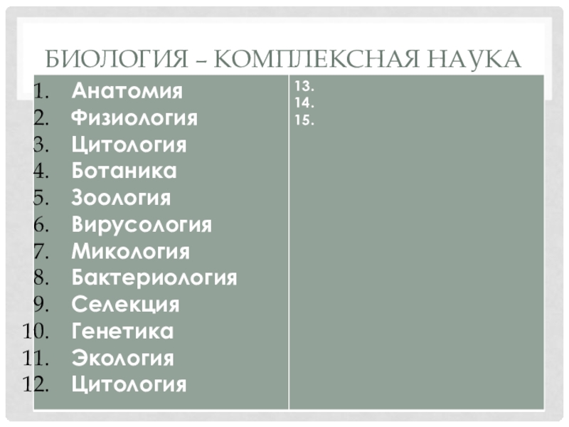 Биология – комплексная наука