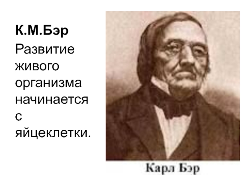 К.М.БэрРазвитие живого организма начинается с яйцеклетки.