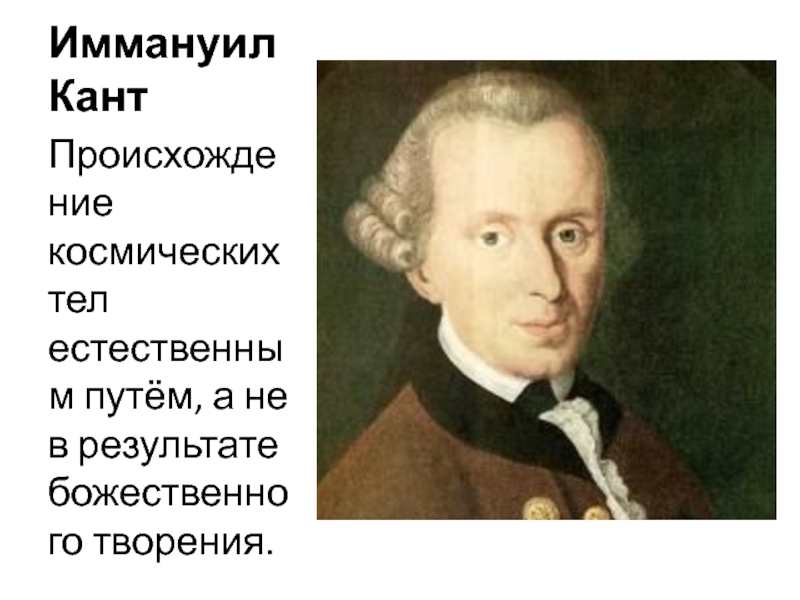 Иммануил КантПроисхождение космических тел естественным путём, а не в результате божественного творения.