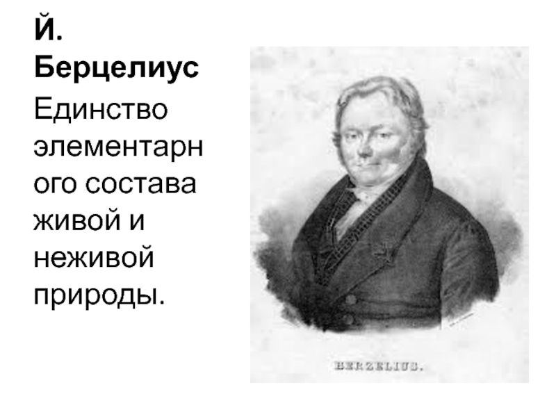 Й.БерцелиусЕдинство элементарного состава живой и неживой природы.