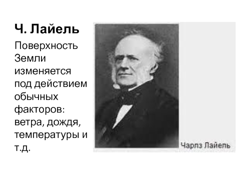 Ч. Лайель Поверхность Земли изменяется под действием обычных факторов: ветра, дождя, температуры и т.д.