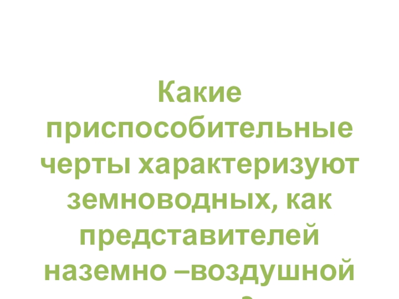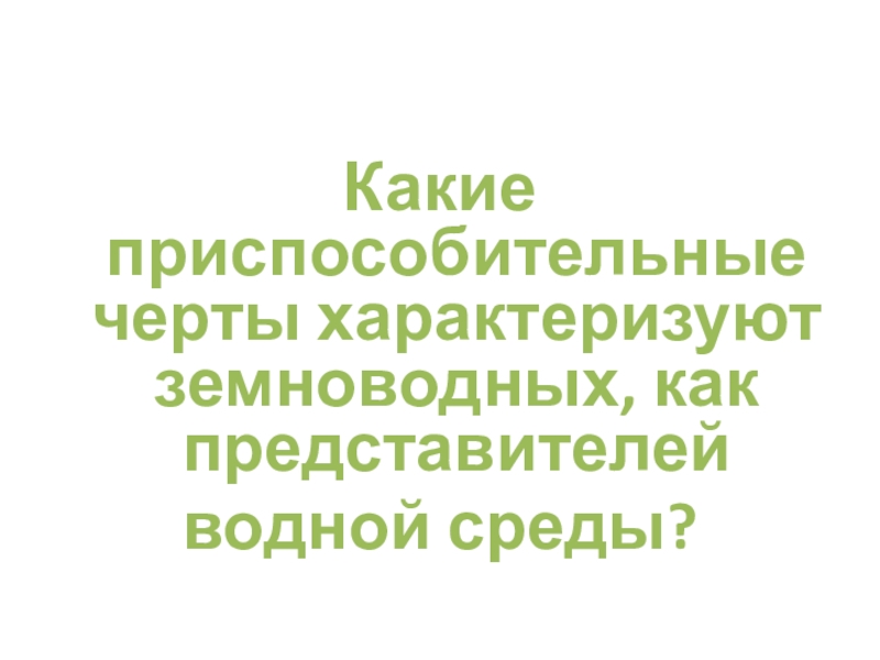 Слайд 4Какие приспособительные черты характеризуют земноводных, как представителей