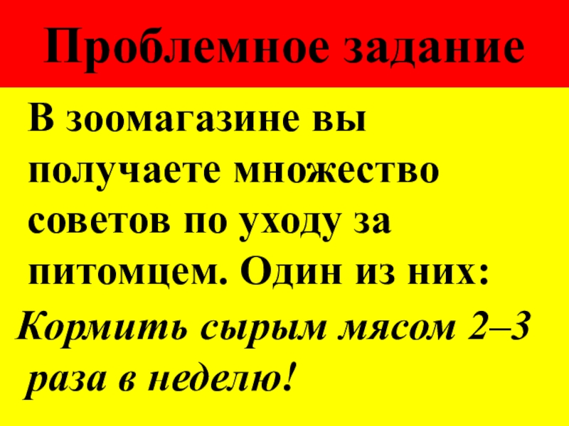 Проблемное задание В зоомагазине вы получаете множество советов по уходу за питомцем. Один из них: Кормить сырым