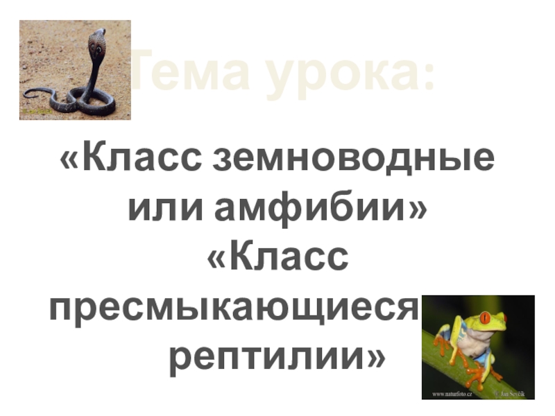 Тема урока: «Класс земноводные или амфибии»«Класс пресмыкающиеся или рептилии»