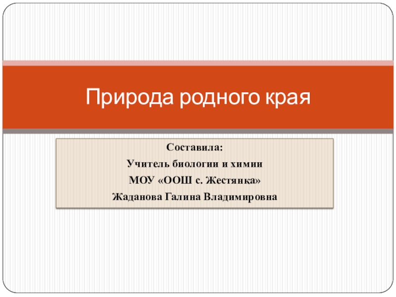 Составила:Учитель биологии и химииМОУ «ООШ с. Жестянка»Жаданова Галина ВладимировнаПрирода родного края