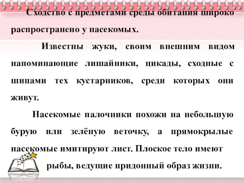 образ жизни, полезным оказываются приспособления, придающие им сходство с предметами окружающей среды.