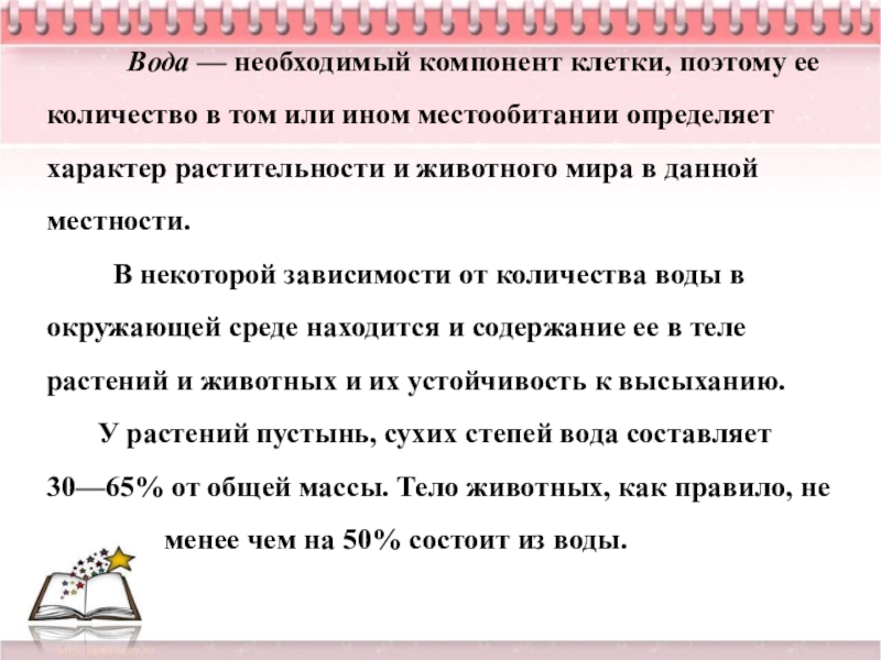 Слайд 31 Вода — необходимый компонент клетки, поэтому