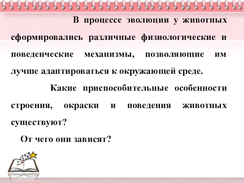 животных сформировались различные физиологические и поведенческие механизмы, позволяющие им лучше адаптироваться к окружающей среде.