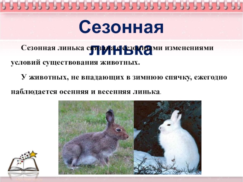 У животных, не впадающих в зимнюю спячку, ежегодно наблюдается осенняя и весенняя линька.