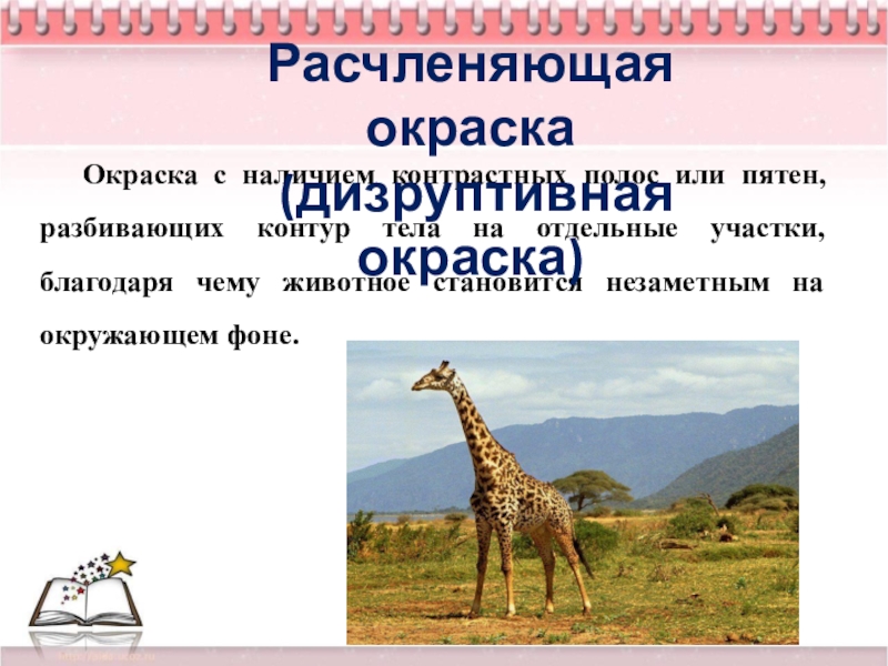 тела на отдельные участки, благодаря чему животное становится незаметным на окружающем фоне.