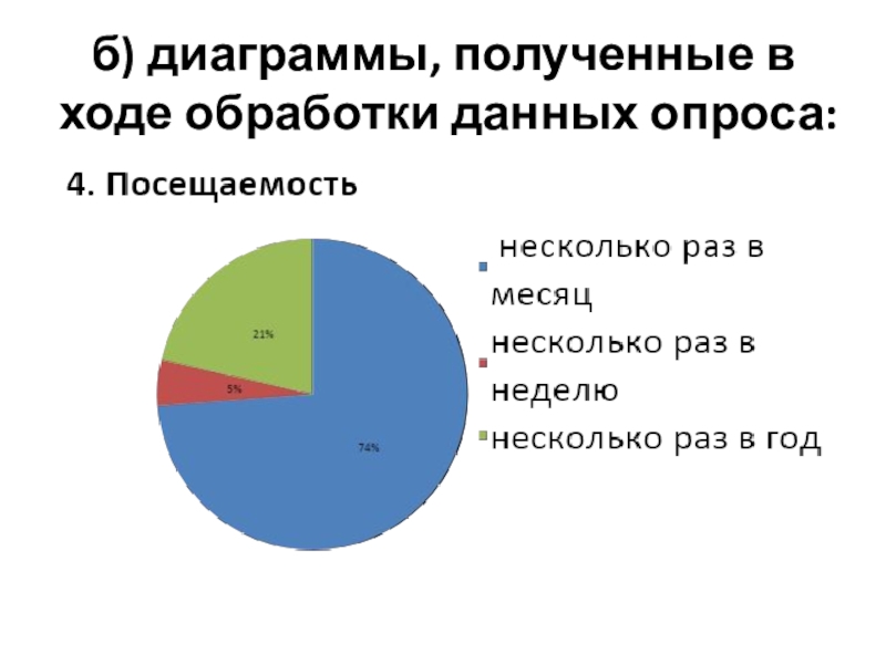 Слайд 20б) диаграммы, полученные в ходе обработки данных опроса:
