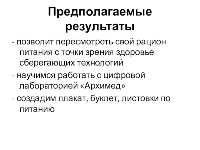 Слайд 4Предполагаемые результаты