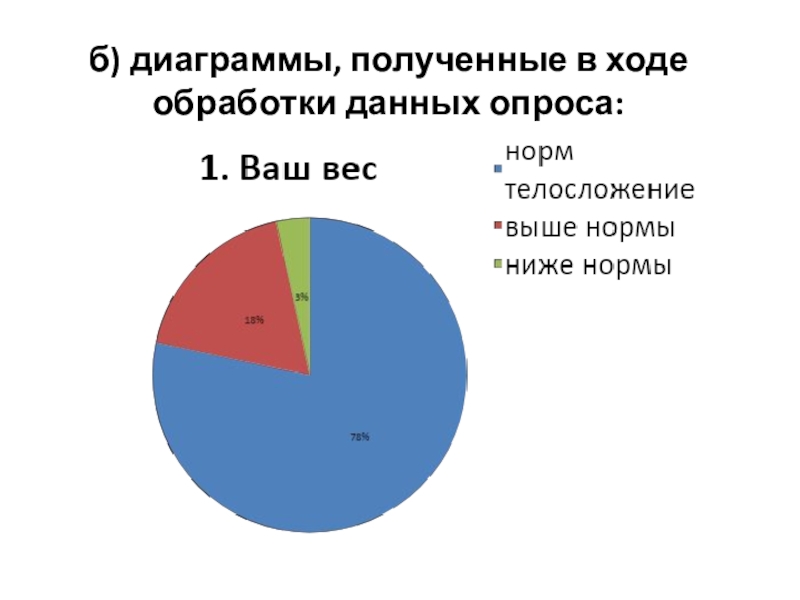 Слайд 18б) диаграммы, полученные в ходе обработки данных опроса: