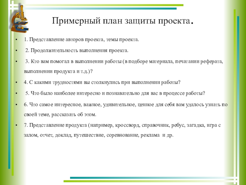 7. Представление продукта (например, кроссворд, справочник, ребус, загадка, игра с залом, отчет, доклад, путешествие, соревнование, реклама и др.