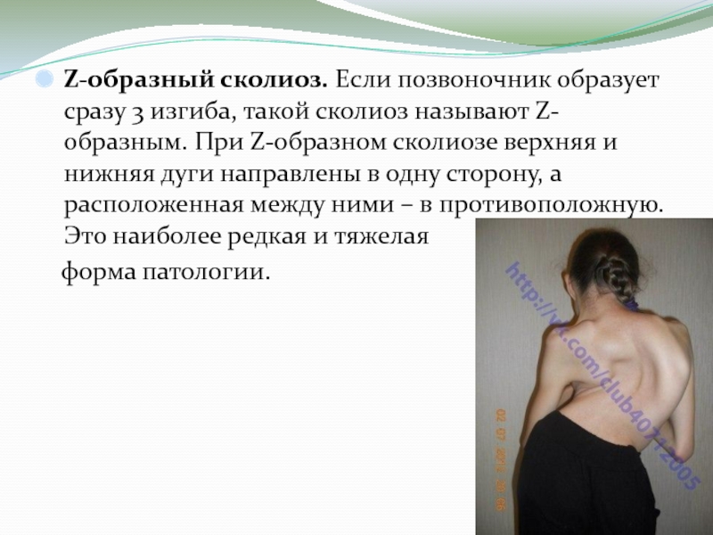 Z-образный сколиоз. Если позвоночник образует сразу 3 изгиба, такой сколиоз называют