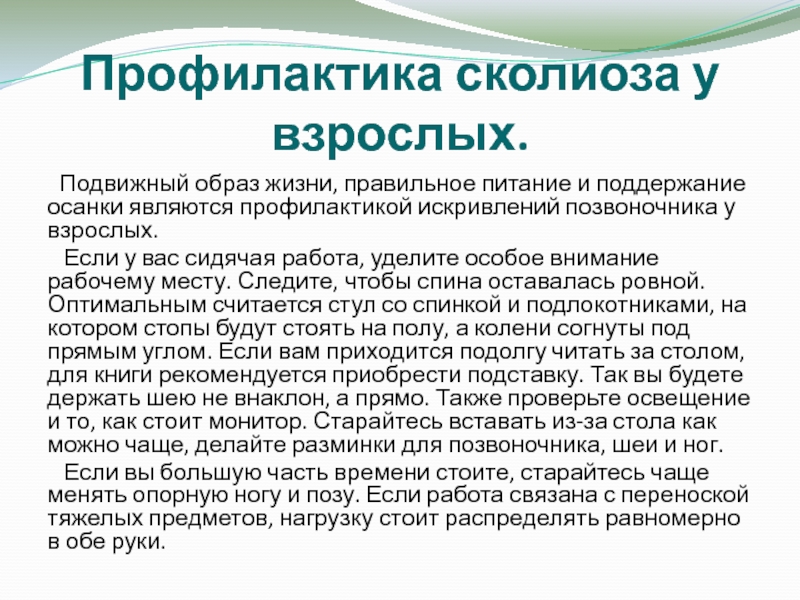 поддержание осанки являются профилактикой искривлений позвоночника у взрослых.