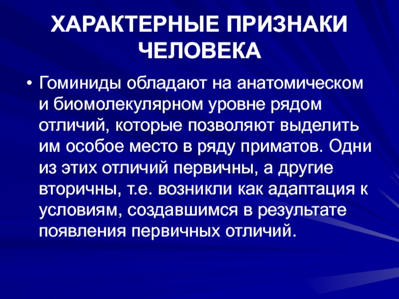 Слайд 21ХАРАКТЕРНЫЕ ПРИЗНАКИ ЧЕЛОВЕКА