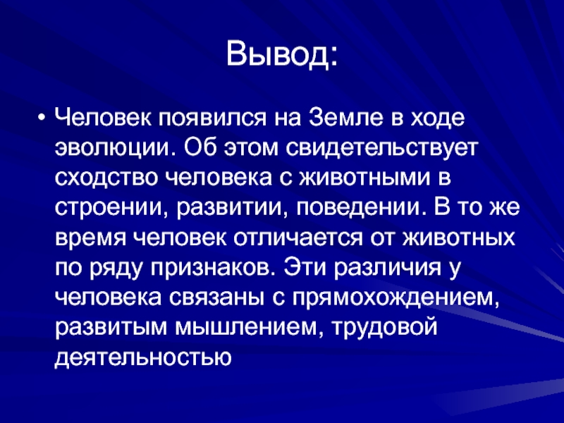 Человек появился на Земле в ходе эволюции. Об этом свидетельствует сходство