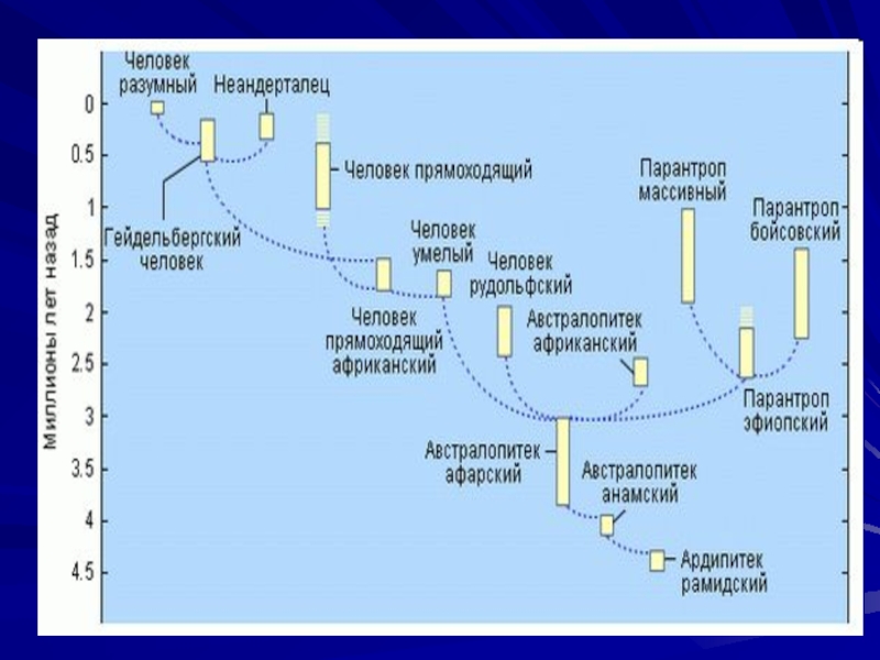 Слайд 34Происхождение человека. Этапы его становления
