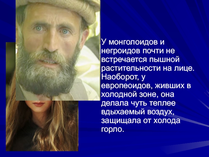 У монголоидов и негроидов почти не встречается пышной растительности на лице.