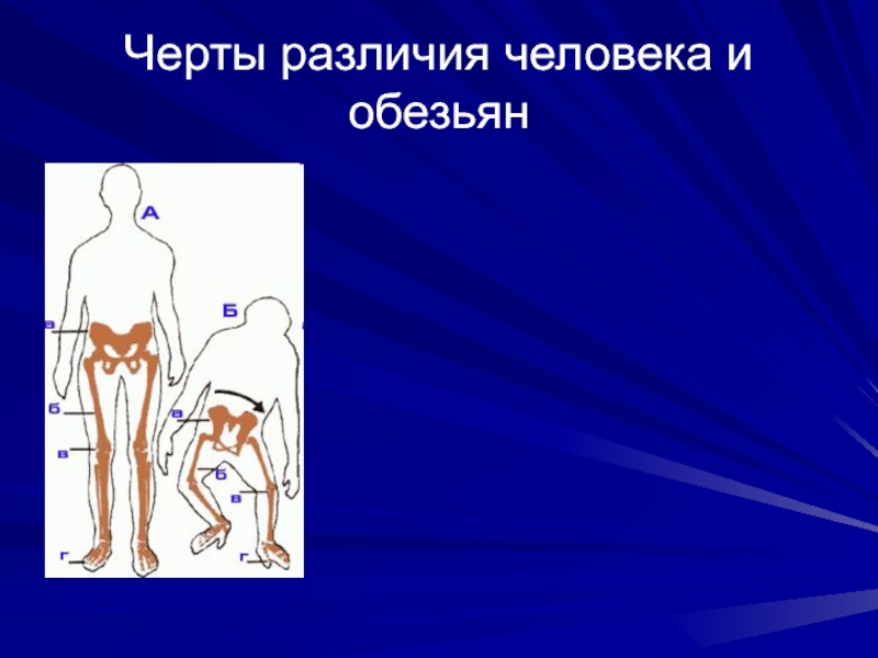 Слайд 16Черты различия человека и обезьян