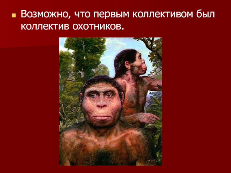 Слайд 25Возможно, что первым коллективом был коллектив охотников.