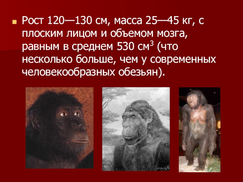 мозга, равным в среднем 530 см3 (что несколько больше, чем у современных человекообразных обезьян).