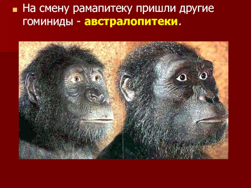 Слайд 12На смену рамапитеку пришли другие гоминиды - австралопитеки.
