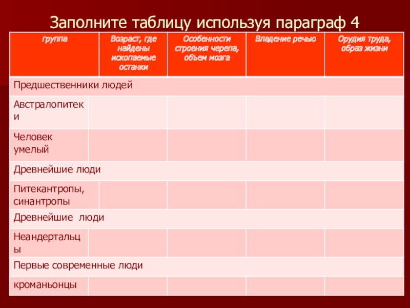 Слайд 3Заполните таблицу используя параграф 4