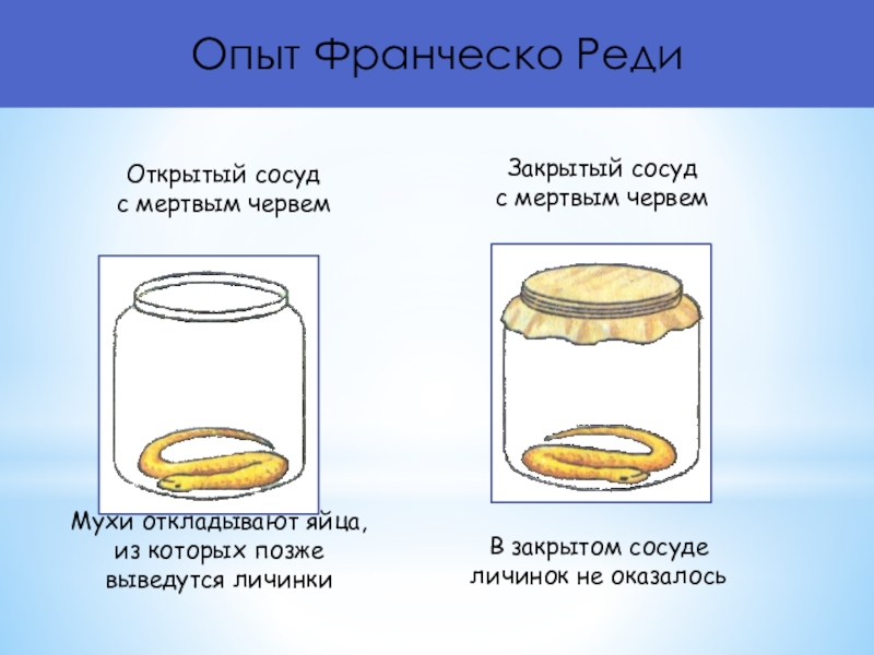 В 1668 г. Реди проделал опыт, который опровергнул