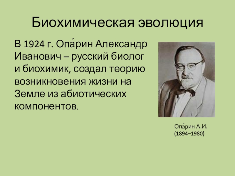 и биохимик, создал теорию возникновения жизни на Земле из абиотических компонентов.