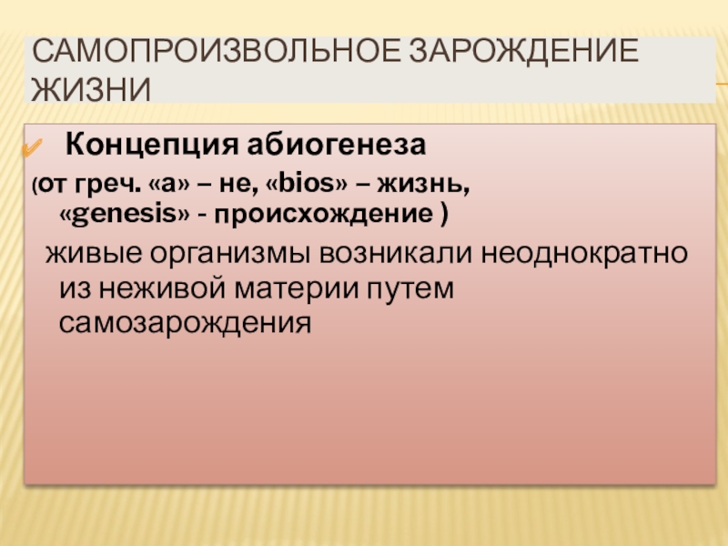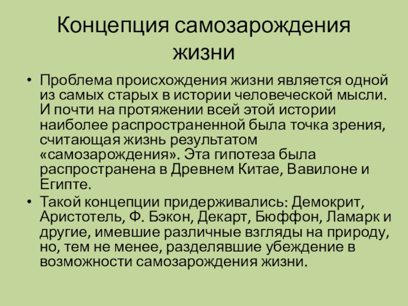 Слайд 9Концепция самозарождения жизни